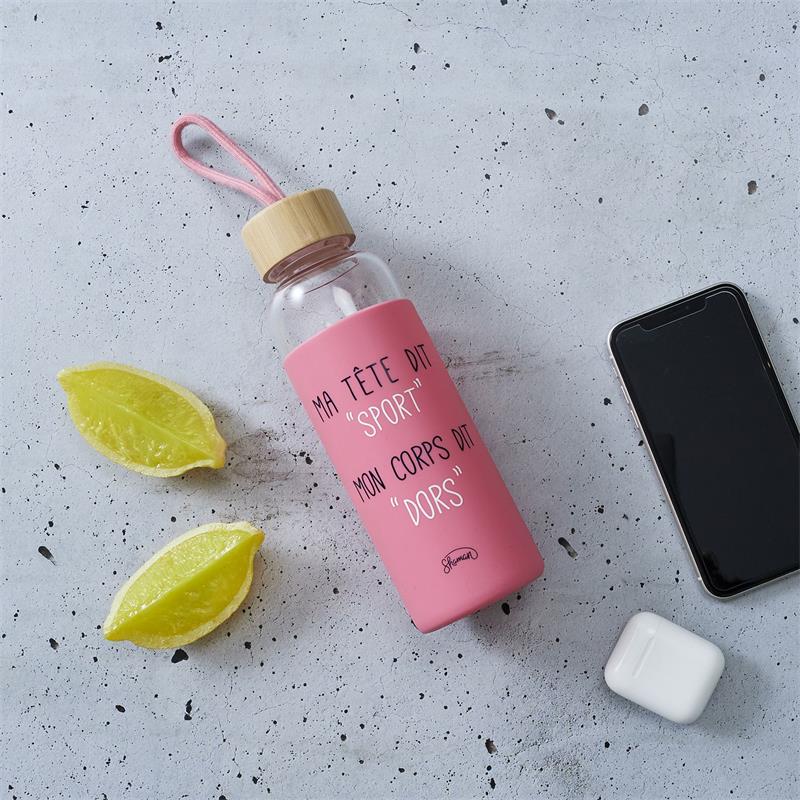 GOURDE EN VERRE MA TETE DIT SPORT MON CORPS DIT DORT